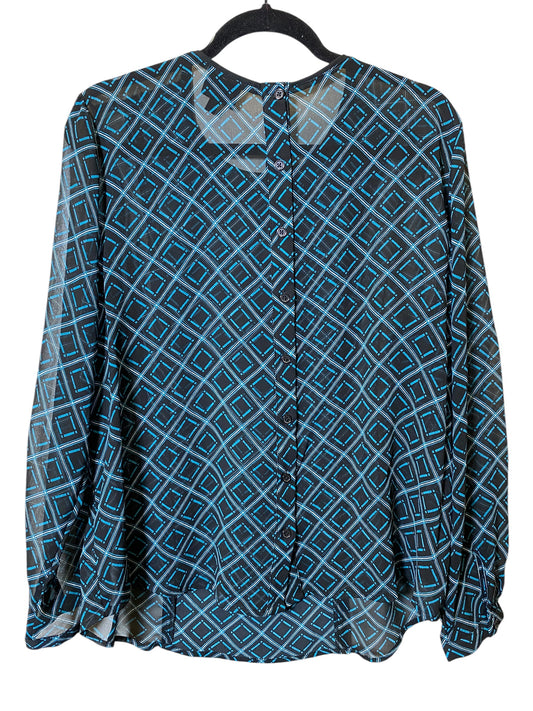 Top Long Sleeve By Who What Wear In Black & Blue, Size: Xl