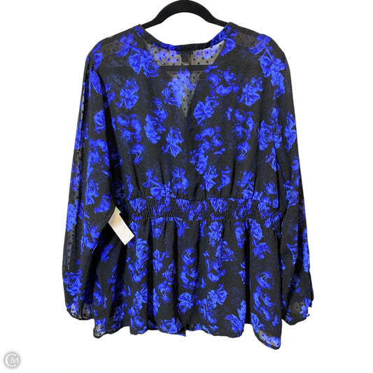 Blouse Long Sleeve By Torrid In Black & Blue, Size: 3x