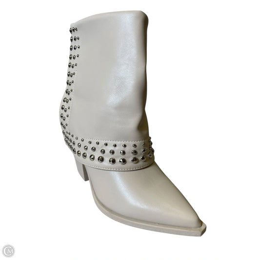 Boots Mid-calf Heels By Wild Diva In Cream, Size: 6.5