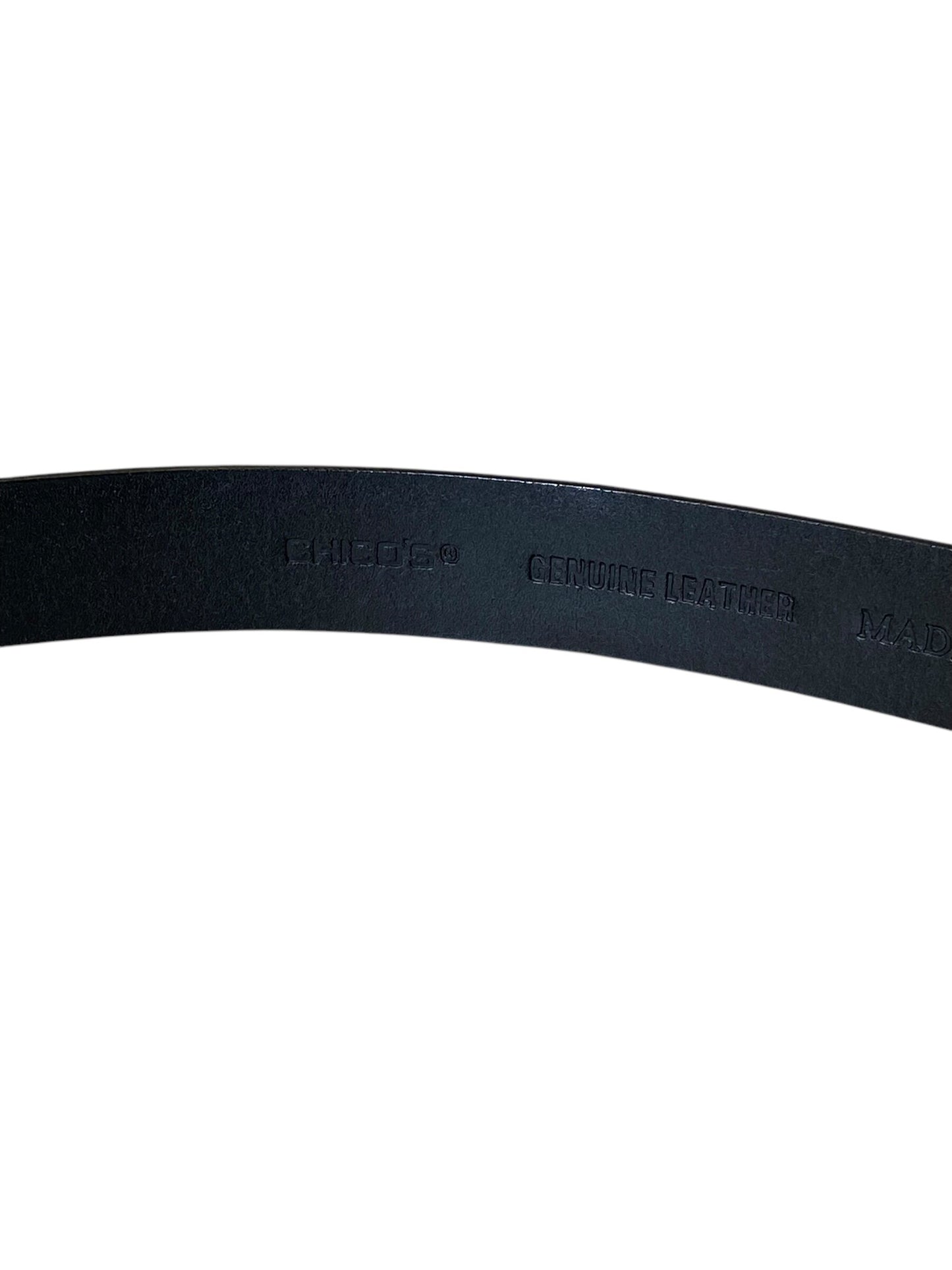 Crafted from supple leather, this Chicos belt in Medium size exudes timeless elegance. Elevate your look with quality craftsmanship.