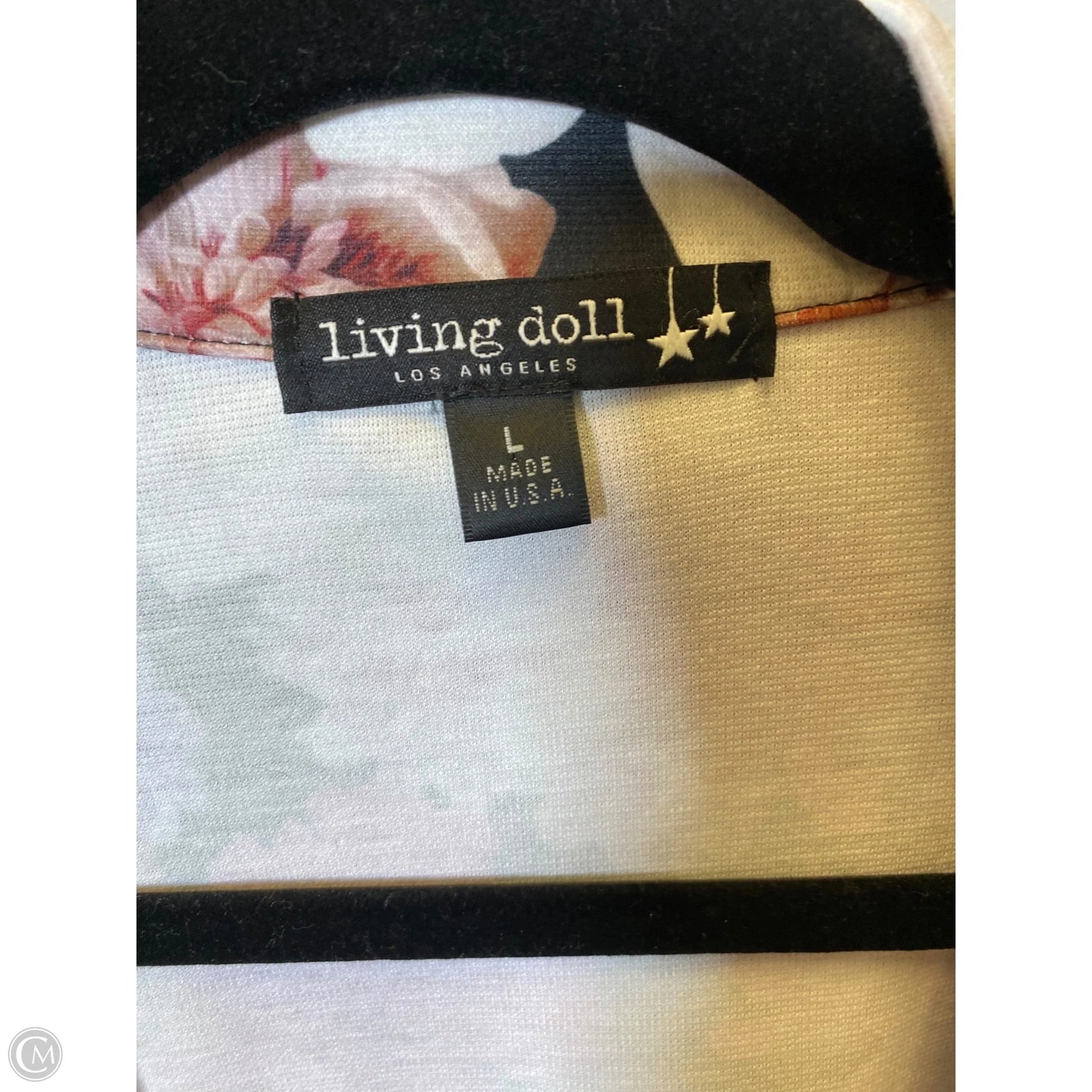 Embrace botanical beauty in this Living Doll floral blazer. Size L for a flattering fit. Vibrant print, tailored cut, and confident style make a bold statement. Perfect for any occasion.