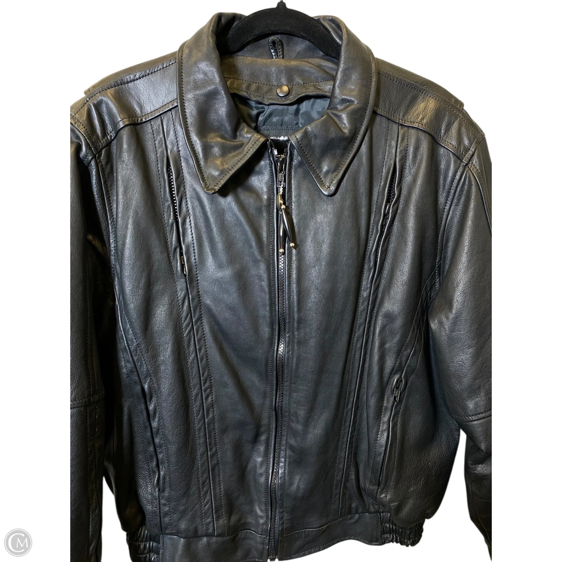 Jacket Leather By Clothes Mentor In Black, Size: L