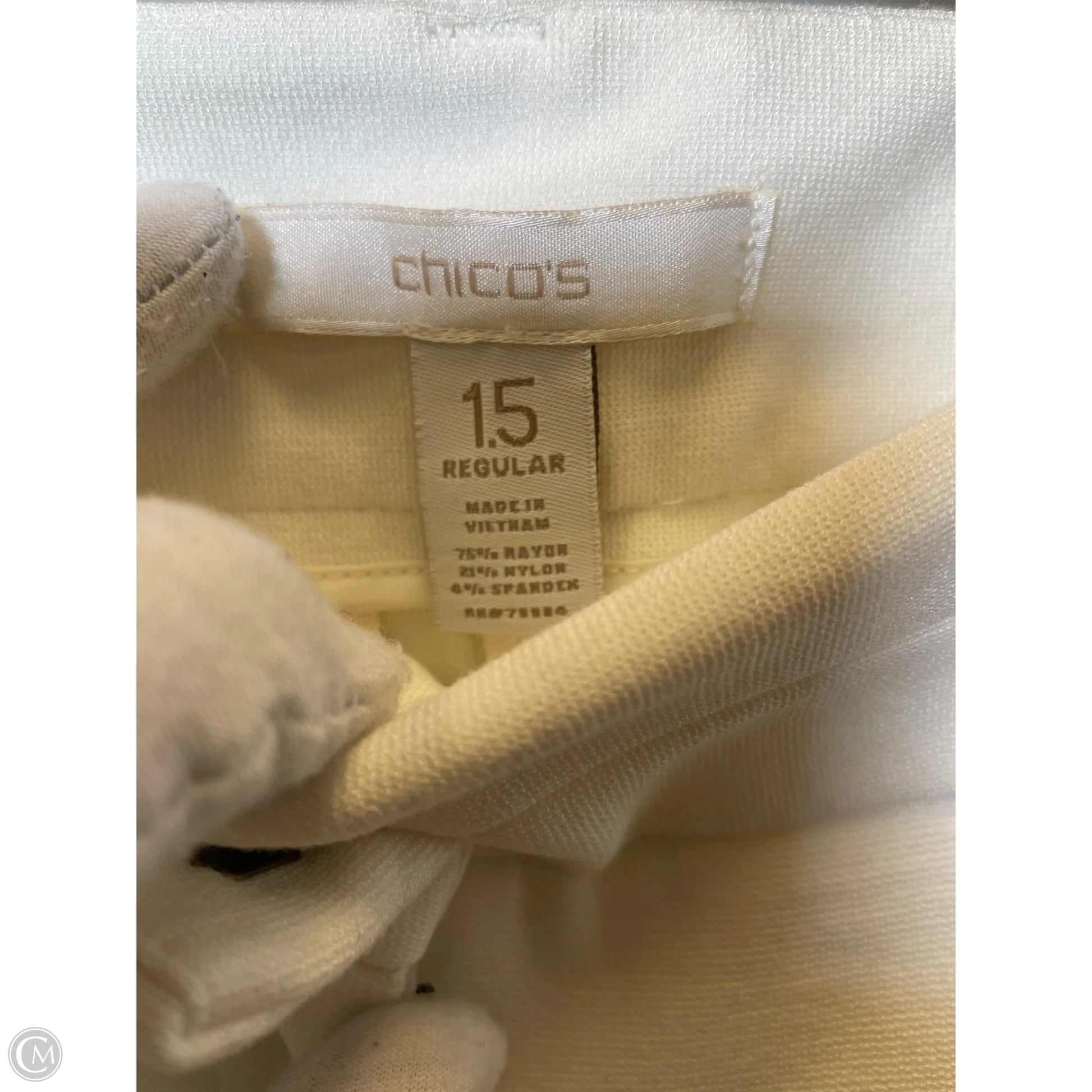 Chico's cream pants, size M, exude effortless sophistication with a tailored fit and versatile style.