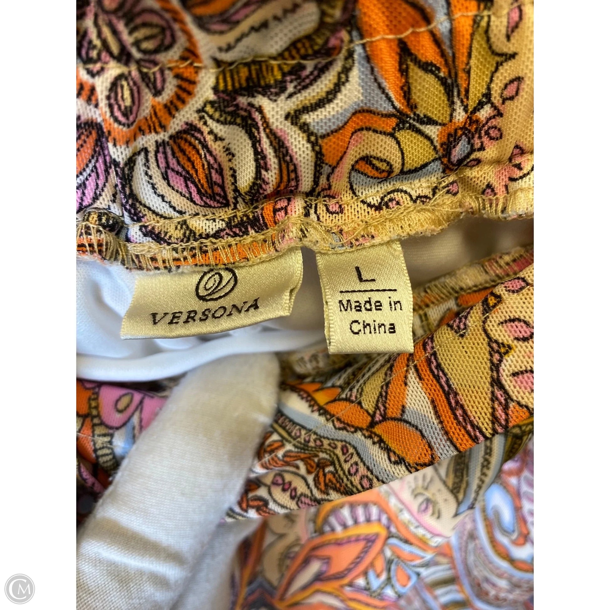 Indulge in the vibrant allure of this Versona midi skirt in size 14, showcasing a striking multi-colored design.