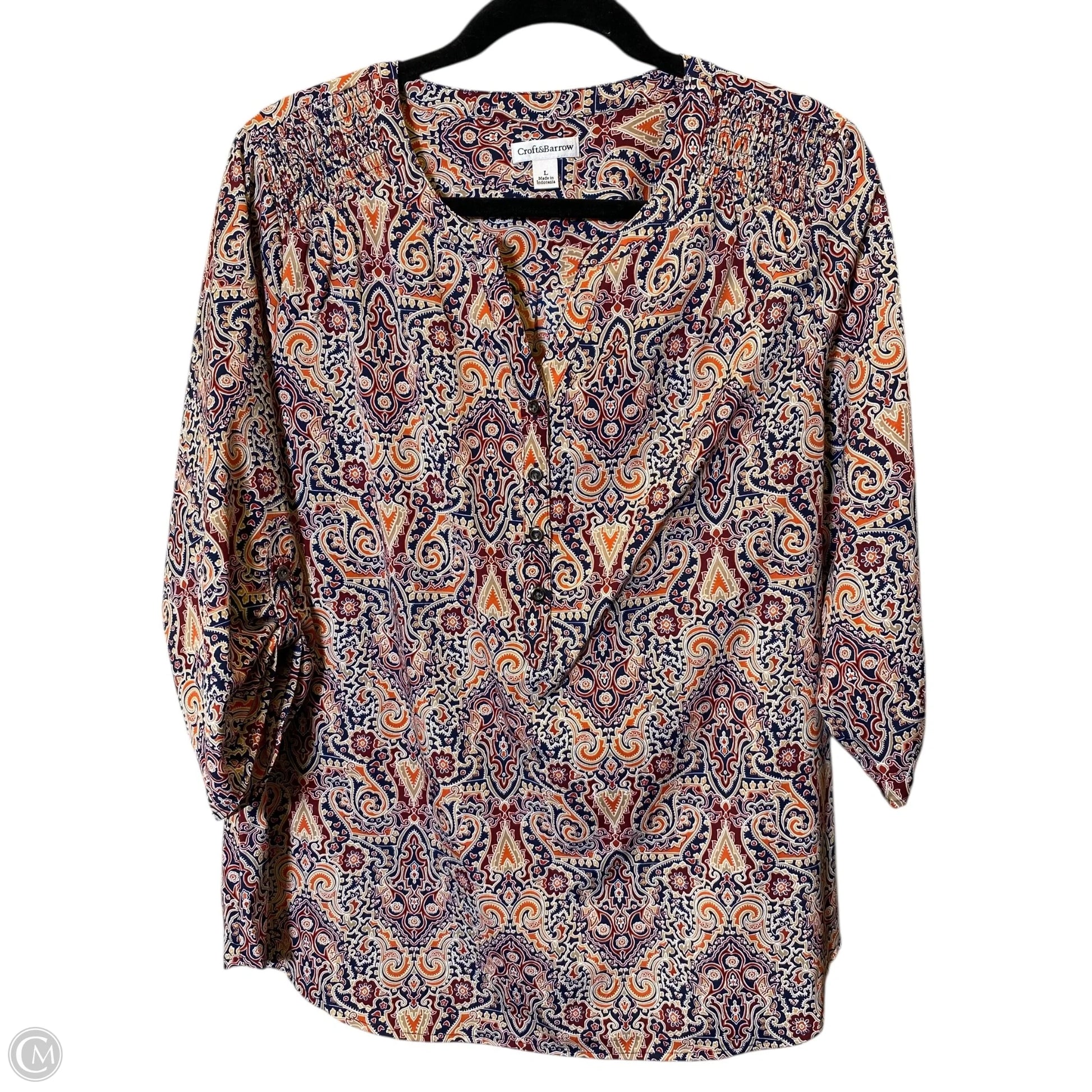 Top 3/4 Sleeve By Croft And Barrow In Multi-colored, Size: L
