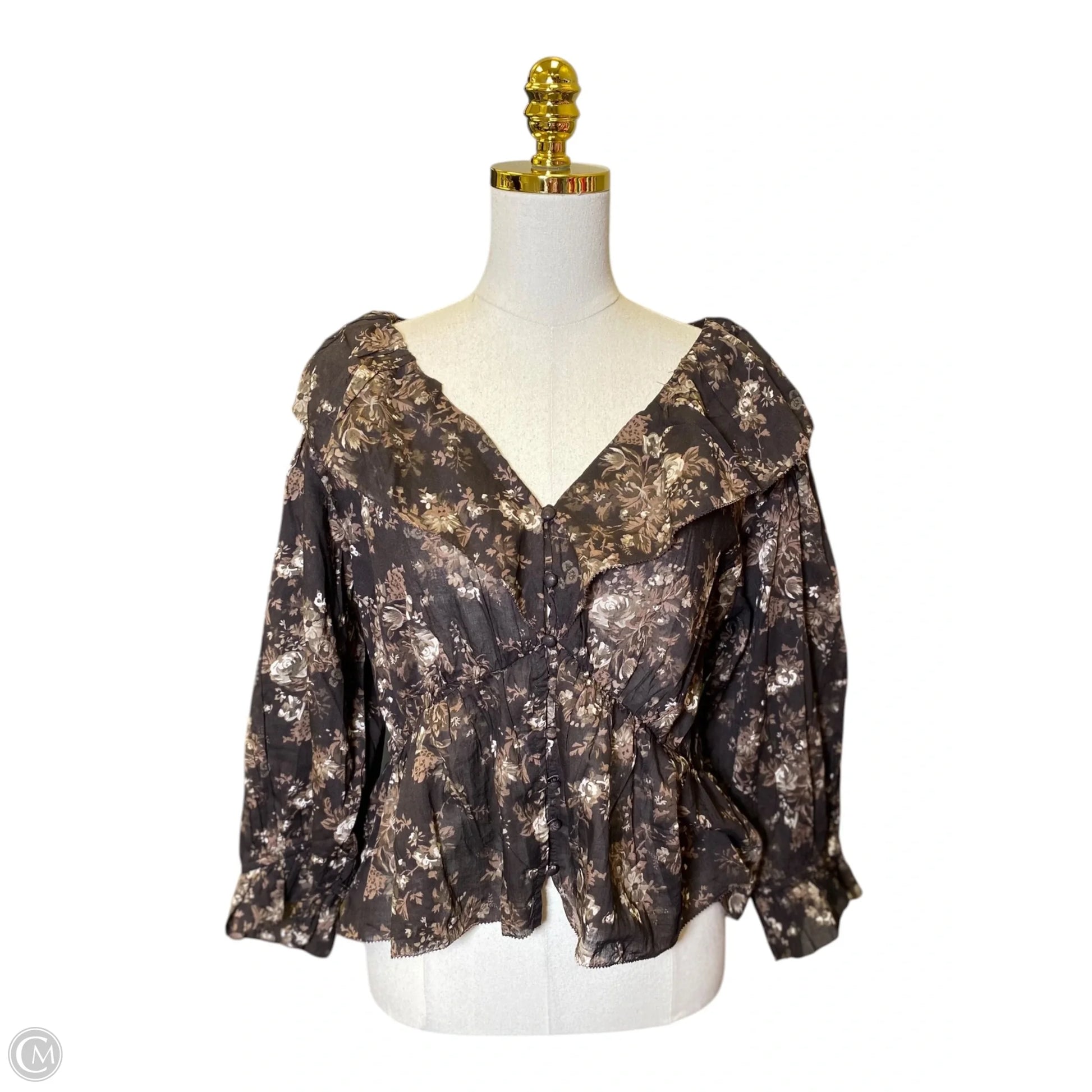 Top 3/4 Sleeve By Gap In Brown, Size: L