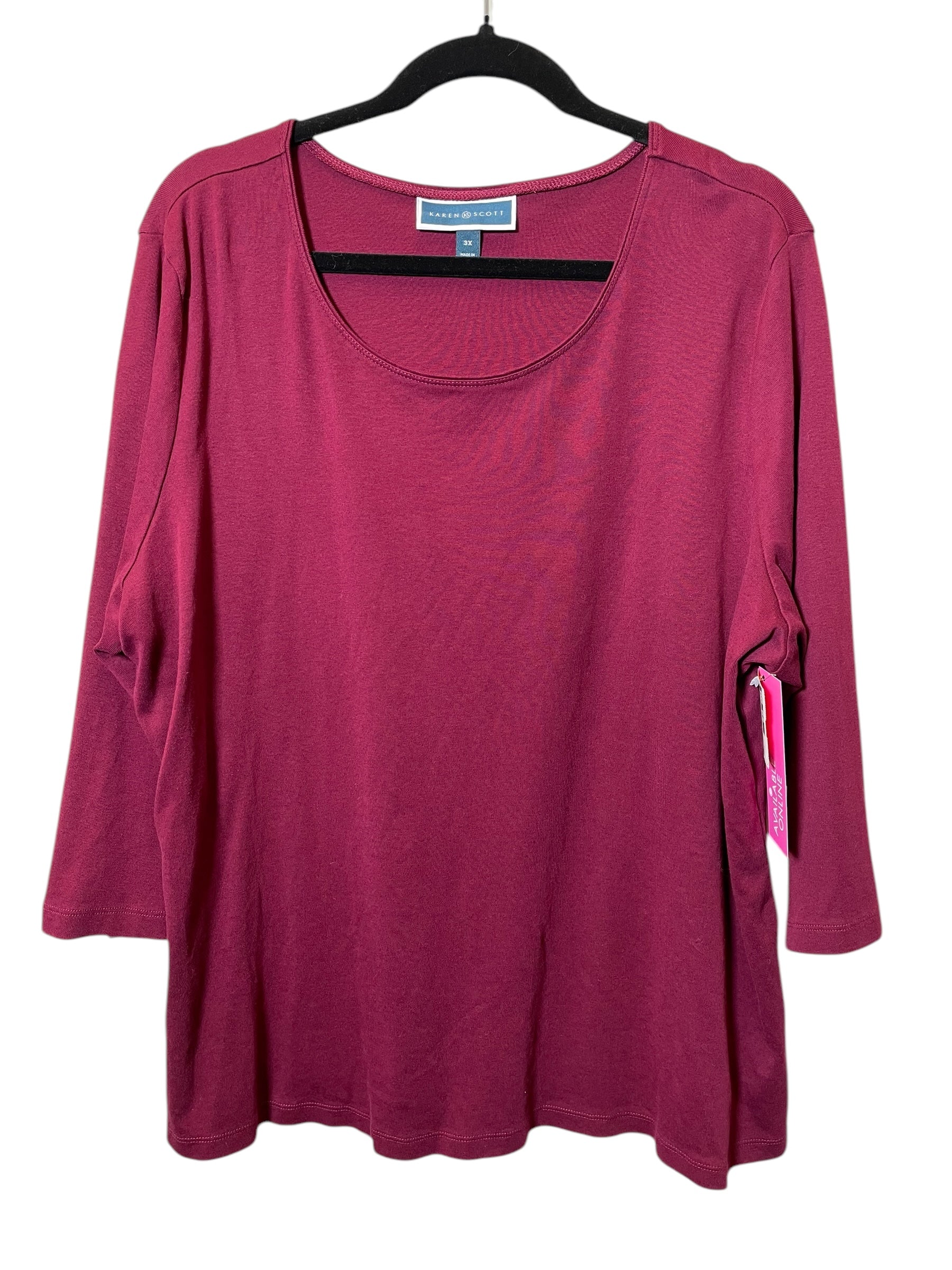 Top 3/4 Sleeve By Karen Scott In Maroon, Size: 3x