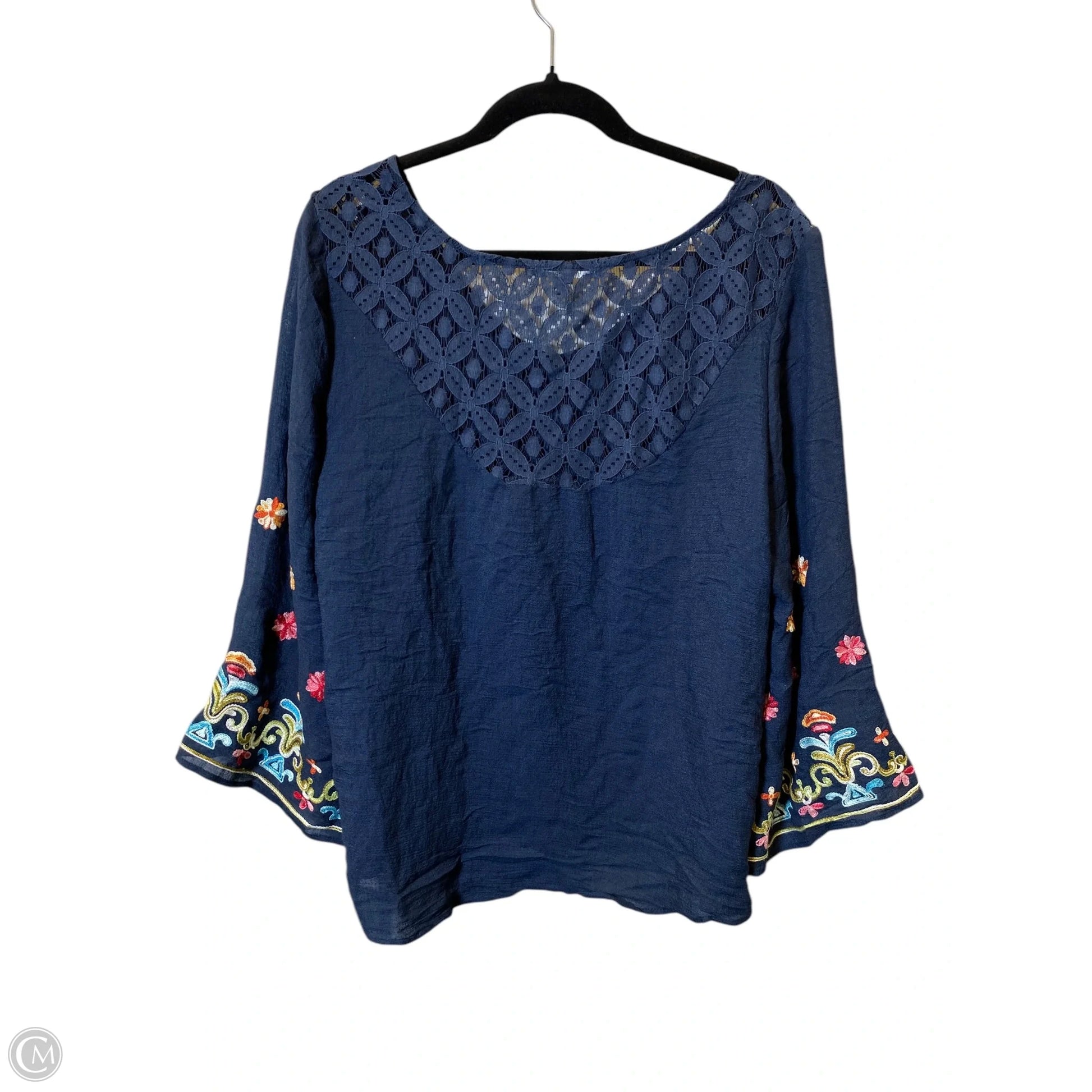 Top 3/4 Sleeve By Valerie Stevens In Navy, Size: Xl