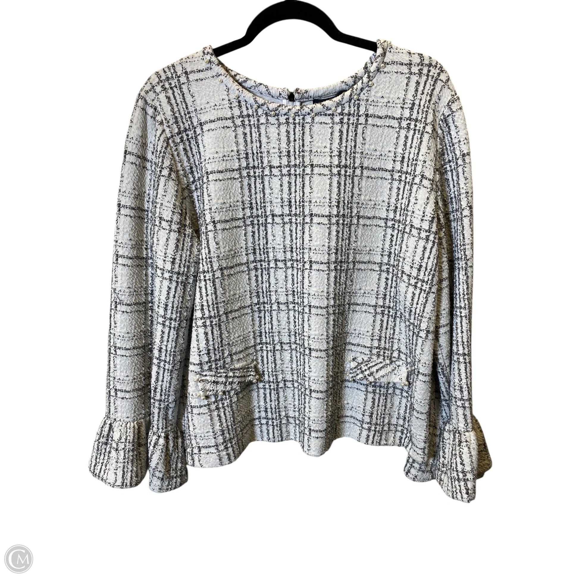 Top Long Sleeve Designer By Karl Lagerfeld In Black & White, Size: Xl