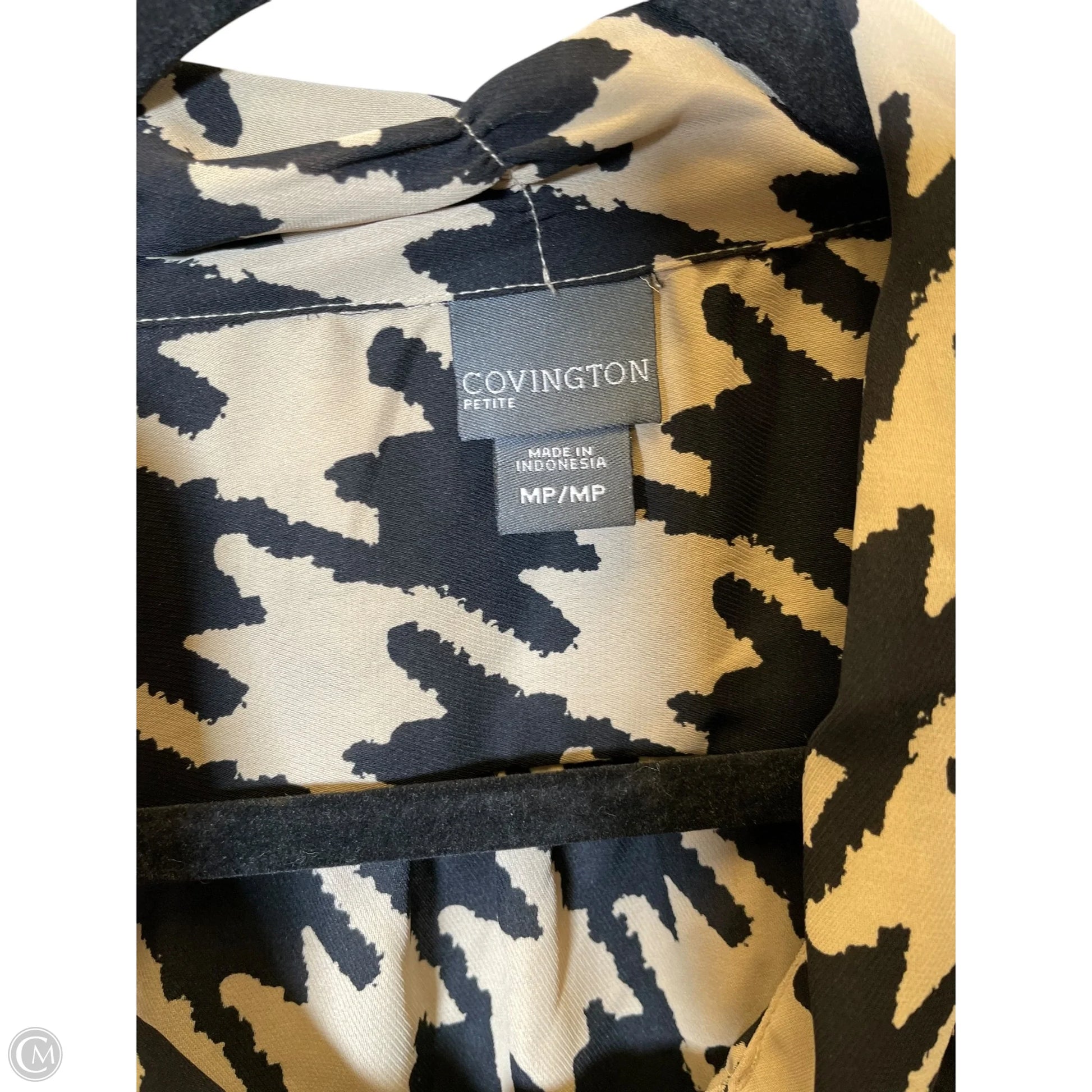 Effortlessly chic in black & tan, this Covington top in size MP boasts a sleeveless design for versatile styling. Crafted with quality fabric for a comfortable fit.